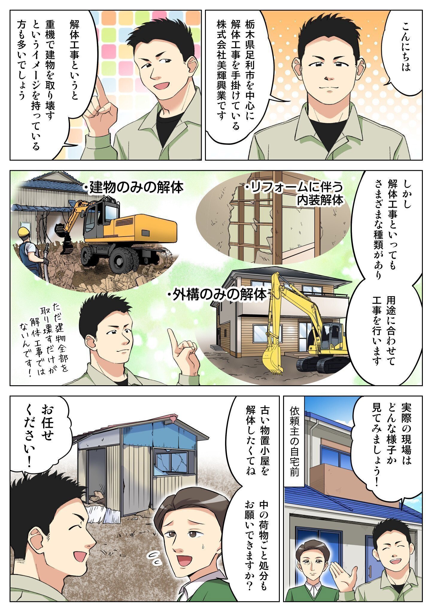 栃木県足利市に拠点を構える 美輝興業株式会社では、解体工事を承っております。家屋全体の解体をはじめ、内装・外構の解体や庭木の伐採・伐根など、さまざまな解体工事に対応可能。豊富な経験を活かし、安心・安全な施工をお約束しますので、お気軽にご相談ください。